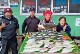 船外機ボートで藤巻さんがシマアジ、ツバス、イスズミ、グレをゲット。