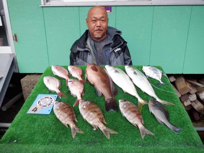 2020.11.02 UP ボート釣り釣果 船外機ボートで名古さんがオオモンハタ51cm、マダイ、ツバス、グレ、イトヒキアジをゲット。 釣行日 2020年11月02日 釣り人 名古 コメント 仕掛け カゴ天秤 エサ オキアミ