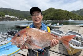 船外機ボートで水野さんがマダイ66㎝までゲット。