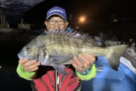 カセ釣りで上田さんがチヌ52㎝をゲット。