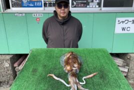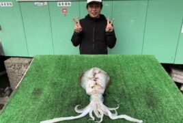 カセ釣りで浅井さんがアオリイカをゲット。