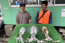 カセ釣りで栗田さんがアオリイカをゲット。
