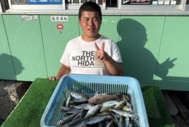 カセ釣りで稲熊さんがアジ、カワハギをゲット。
