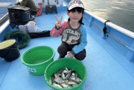 カセ釣りでとくま君がアジをゲット。