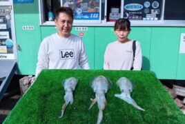 船外機ボートで吉田さんがアオリイカ、ツバスをゲット。
