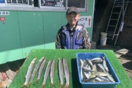 手漕ぎボートで水谷さんがカマス、アジをゲット。