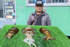船外機ボートで中島さんがアオリイカ1キロまでゲット。