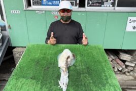 船外機ボートで喜多川さんがアオリイカ&スミイカをゲット。