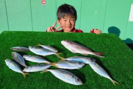カセ釣りでりくと君がアジ、マダイをゲット。