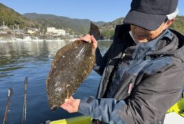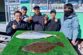 船外機ボートで川村さんがヒラメ、マトウダイをゲット。