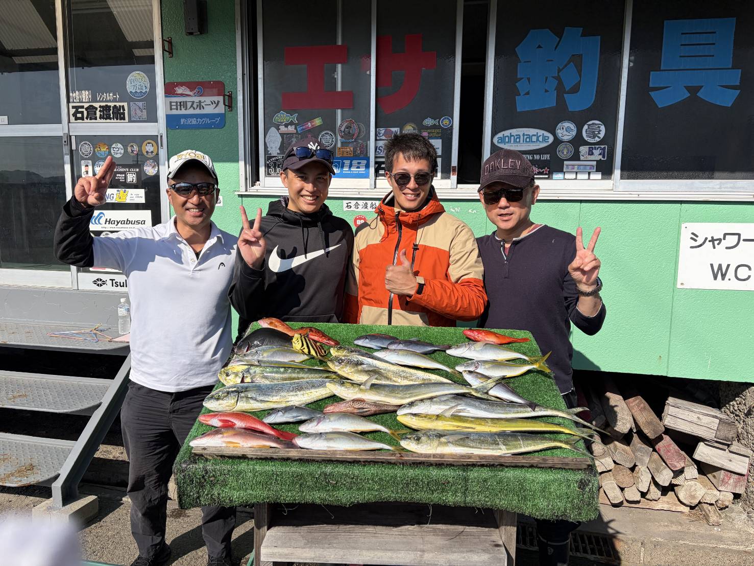 船外機ボートで田中さんがツバス、シマアジ、ソウダカツオ、カサゴをゲット。