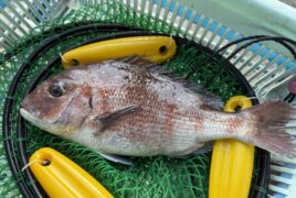 カセ釣りで上田さんがマダイをゲット。