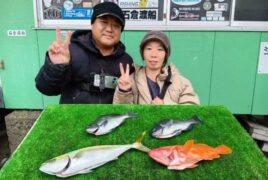 船外機ボートで倉田さんがツバス、アカハタ、グレをゲット。