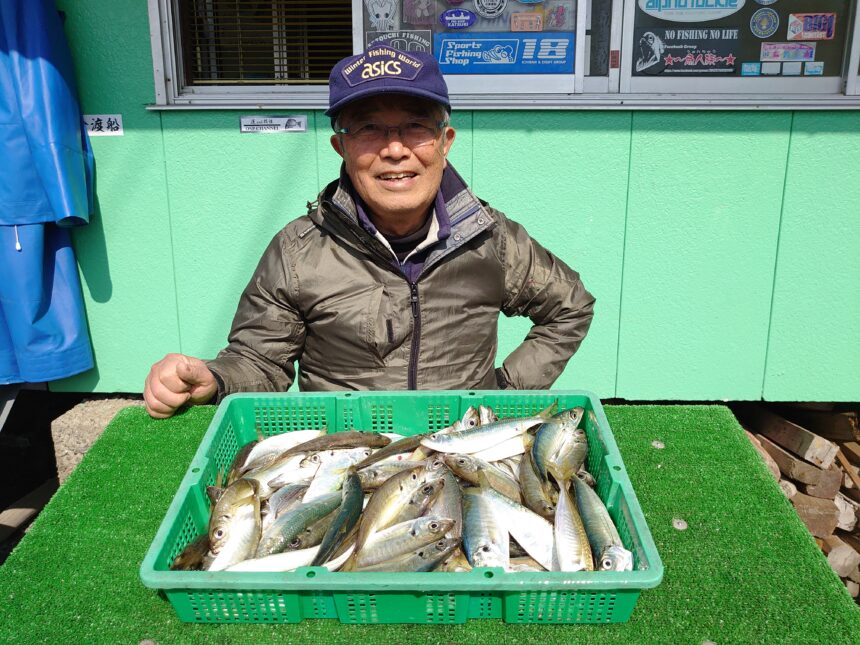 船外機ボートで岡さんがメイチ、グレ、イサキ、カサゴをゲット。