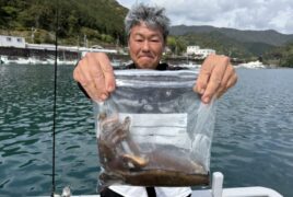 船外機ボートで小池さんがワラサ、クエをゲット。
