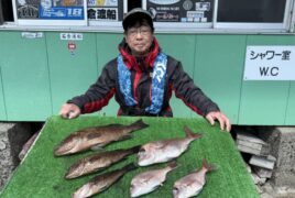 船外機ボートで北川さんがマダイ、イサキ、グレをゲット。