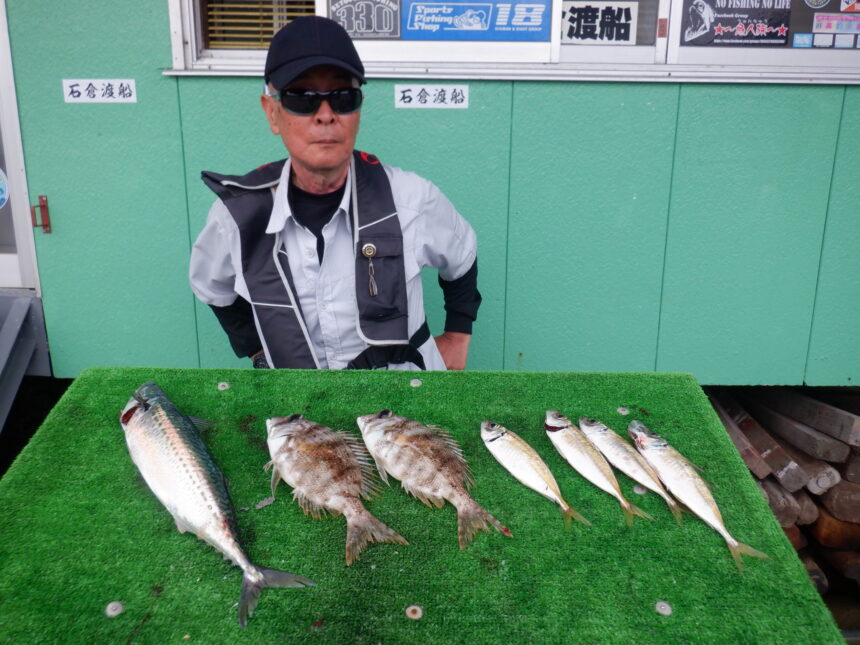 船外機ボートで田中さんがメイチ、サバ、アジをゲット。