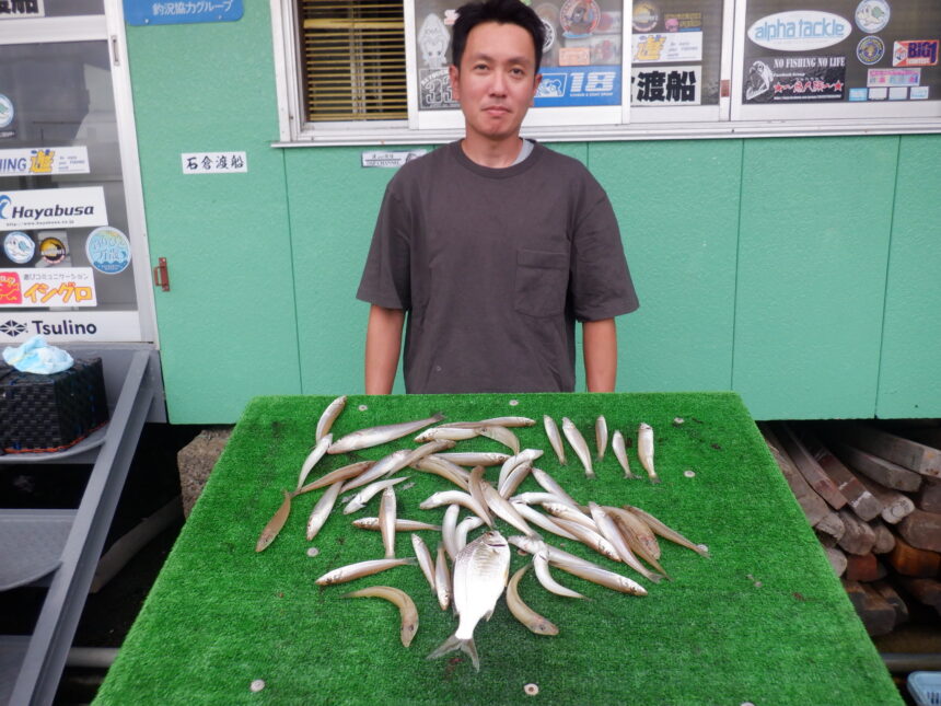 船外機ボートで北村さんがアジ、オオモンハタ、カワハギをゲット。