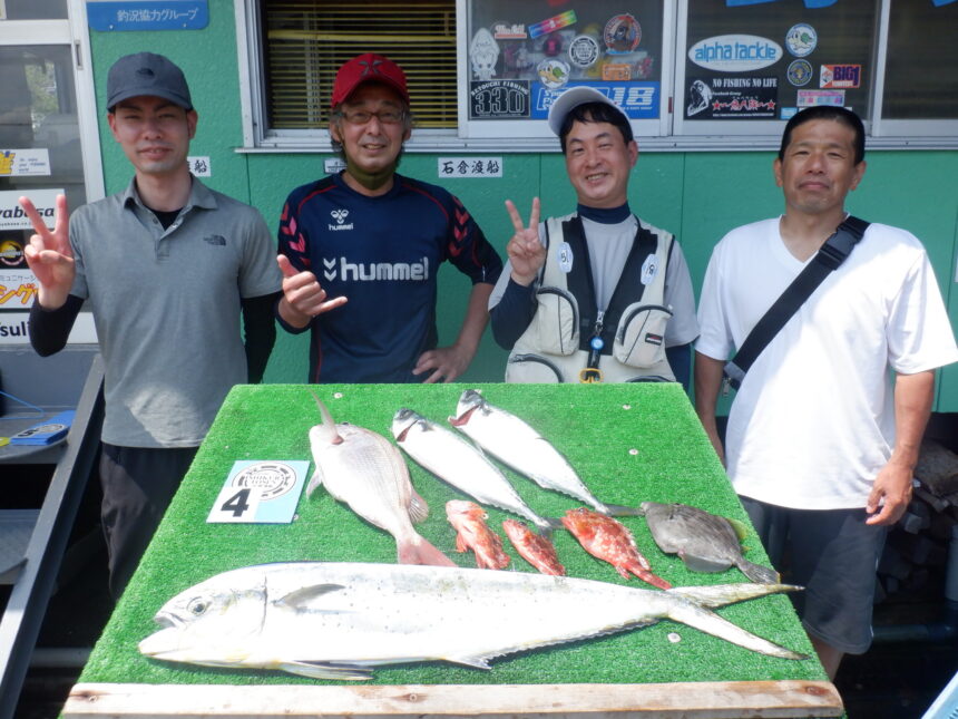 船外機ボートで吉田さんがマダイ、シイラ、カサゴ、サバ、カワハギをゲット。