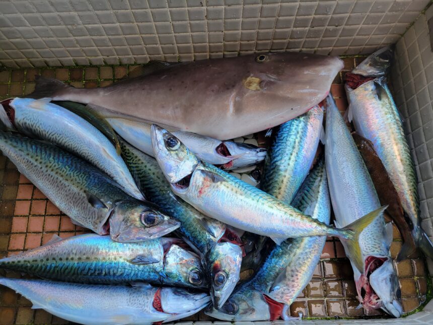 船外機ボートで岩見さんがサバ&ウスバハギをゲット。
