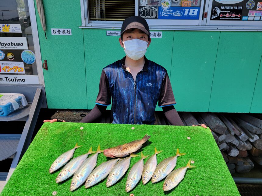 手漕ぎボートで星野さんがアジ、カマスをゲット。