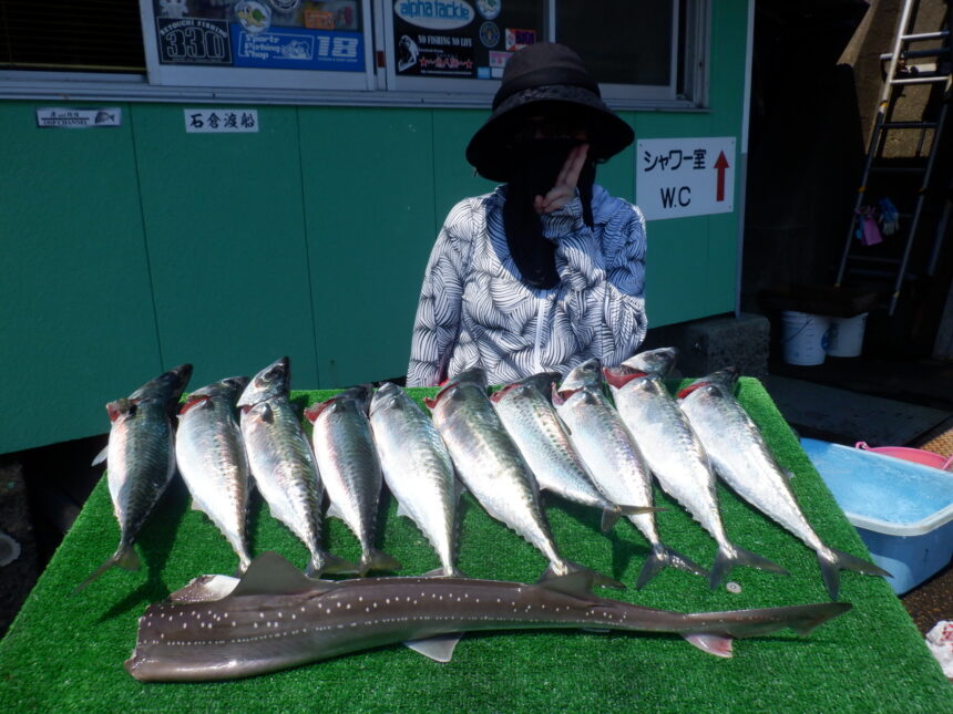船外機ボートでmykikakuさんがサバ、サメをゲット。