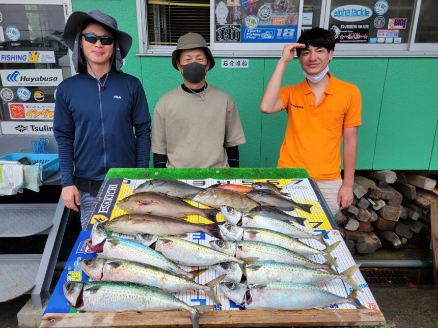 船外機ボートで松森さんがイサキ40cmまでとメイチ、サバ、グレをゲット。