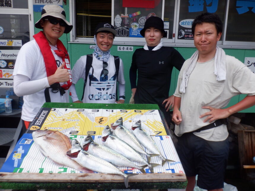 船外機ボートで滝沢さんがカマス、イサキ、シマアジ、アジをゲット。