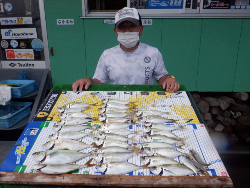 船外機ボートで滝沢さんがカマス、イサキ、シマアジ、アジをゲット。