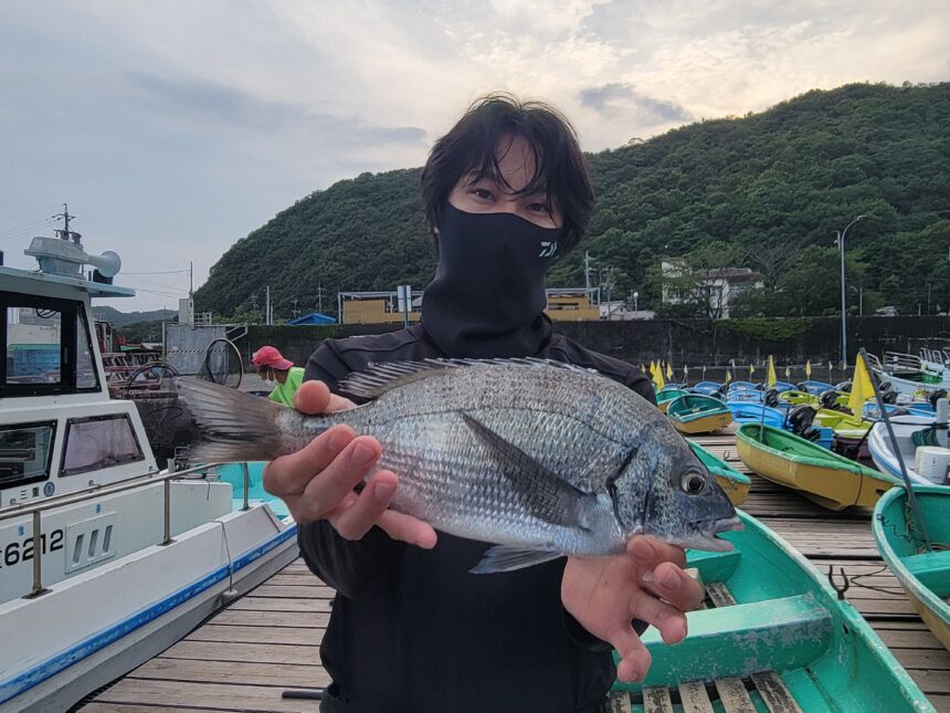 カセ釣りで大西さんがチヌ35cmをゲット。