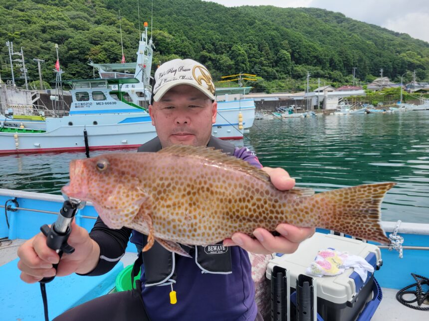 船外機ボートで早川さんがオオモンハタ&カサゴをゲット。