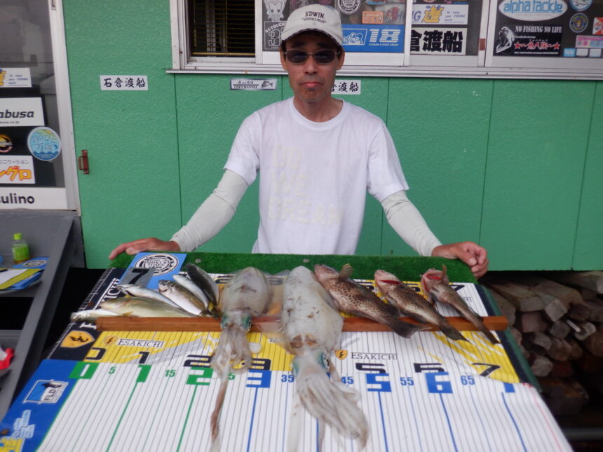 手漕ぎボートで川井さんがアオリイカ1.22kgまでゲット。