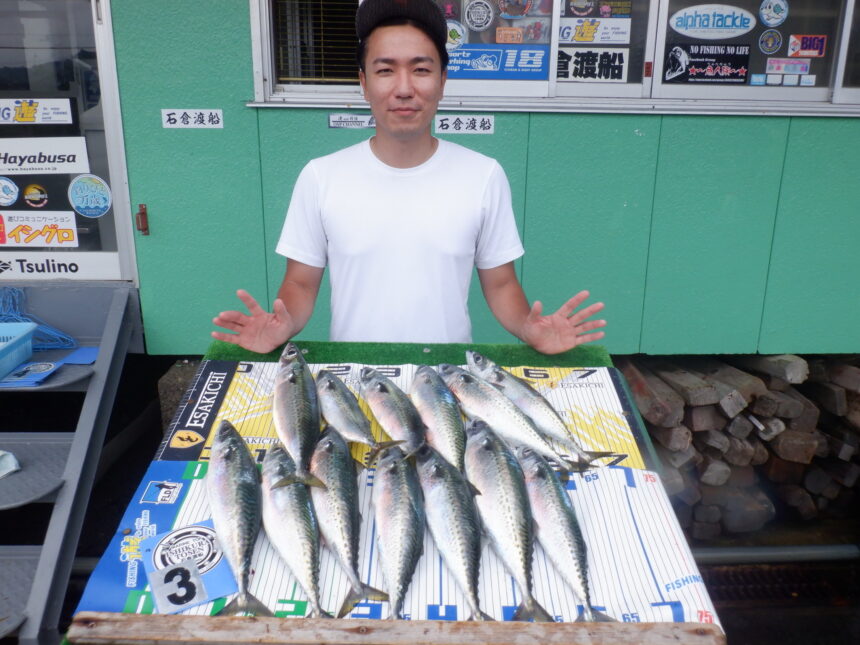 船外機ボートでそうま君、ゆうと君、さくと君がソウダカツオ、カマス、オオモンハタをゲット。