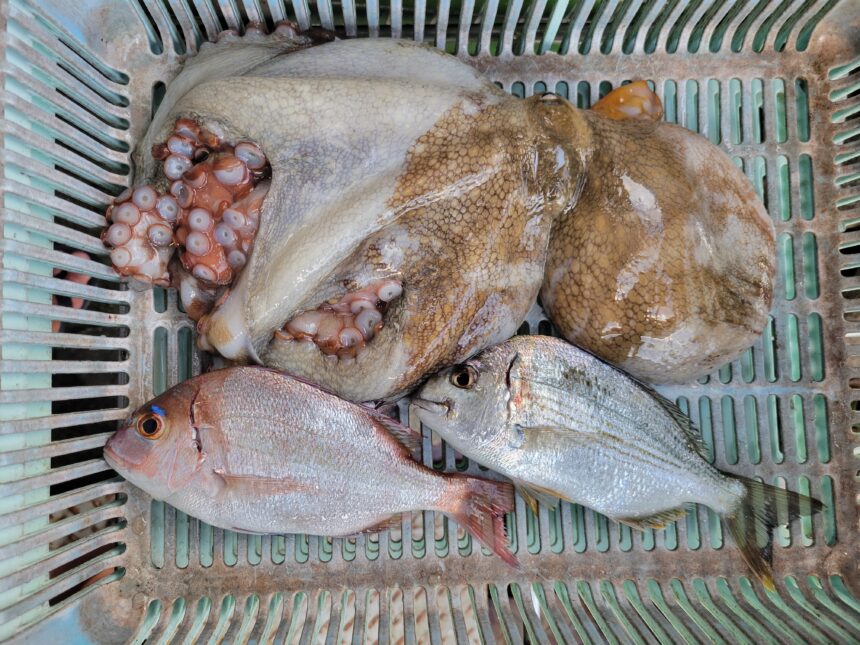 カセ釣りで南木さんがマダコ、マダイ、ヘダイをゲット。