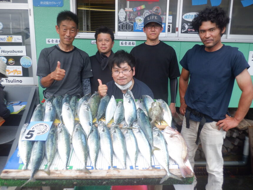 船外機ボートで可児さんがサバ、マダイ、カワハギをゲット。