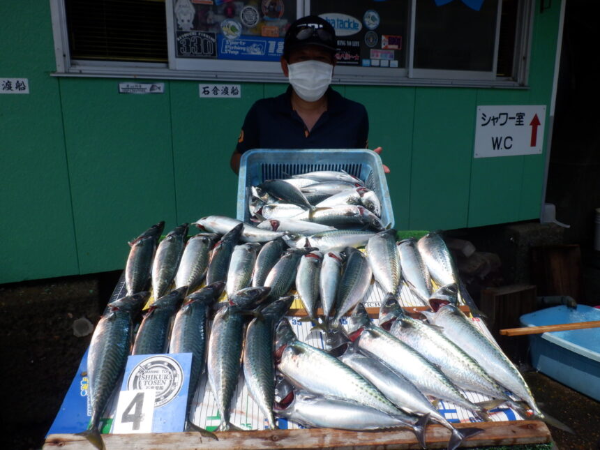 船外機ボートで箕浦さんがサバ、ソウダカツオをゲット。