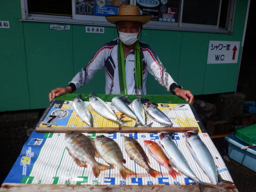 船外機ボートで高尾さんがサバ、メイチ、フエフキをゲット。