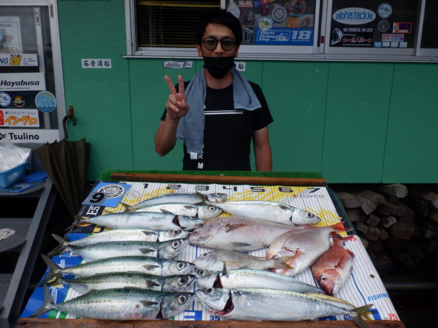船外機ボートで石田さんがマダイ、サバをゲット。