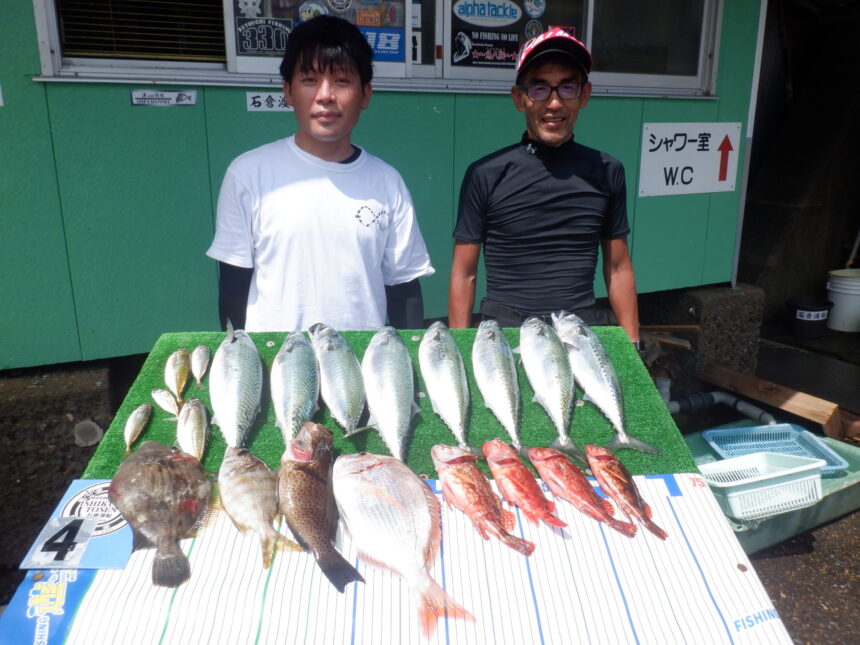 船外機ボートで中村さんがチダイ、カワハギ、オオモンハタ、カサゴ、サバをゲット。