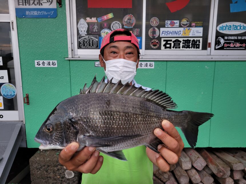 カセ釣りで大川さんがチヌ40㎝までゲット。