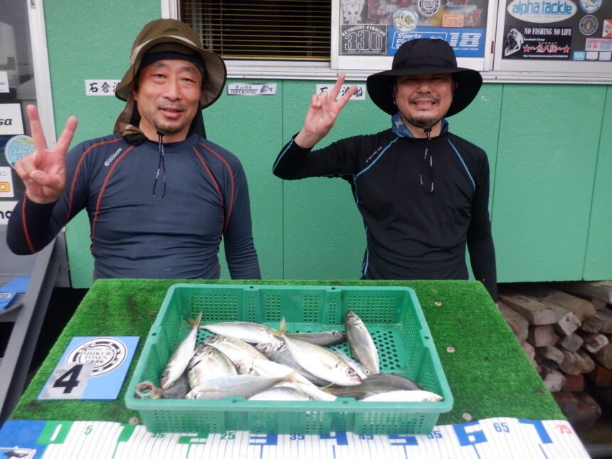 手漕ぎボートで瀬戸山さんが良型アジをゲット。