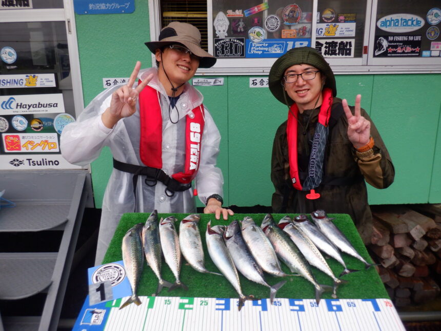 船外機ボートで築城さんがサバ&ソウダカツオをゲット。