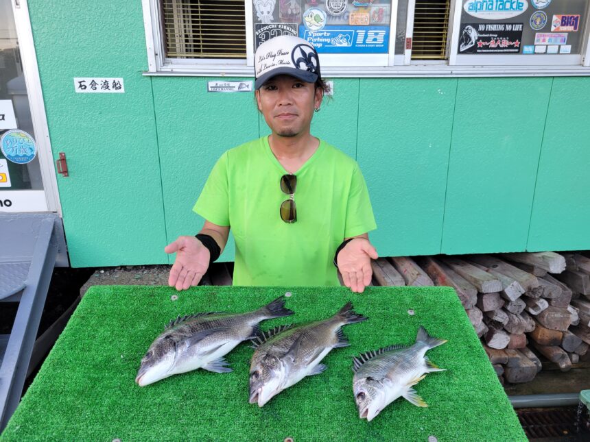 カセ釣りで大川さんがチヌ40㎝までゲット。