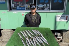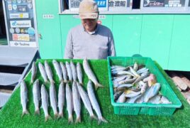 船外機ボートで岩崎さんがシオ、ワラサ、サバをゲット。