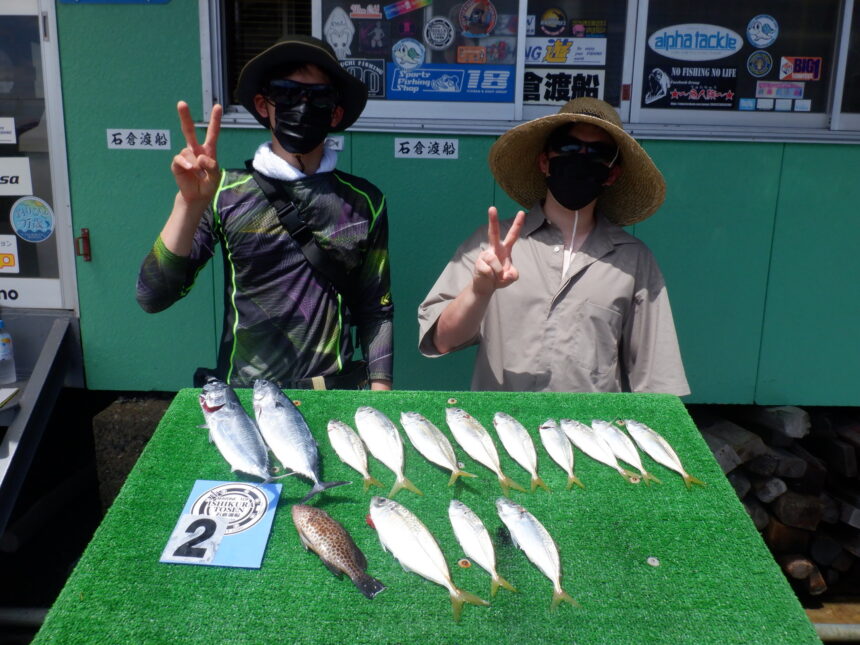 カセ釣りで倉田さん&森下さんがアジ、ソウダカツオ、オオモンハタをゲット。