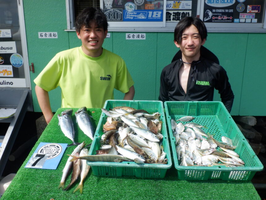 船外機ボートで尾崎さんがアジ、オオモンハタ、ソウダカツオをゲット。