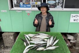 手漕ぎボートで大西さんがカマス、アジをゲット。