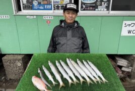 手漕ぎボートで岡村さんがカマス、キントキをゲット。