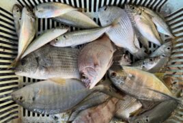 カセ釣りで橋尾さんがアジ、キビレ、シマアジをゲット。