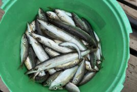 船外機ボートでらむちゃんがアジ、サッパ、サバをゲット。